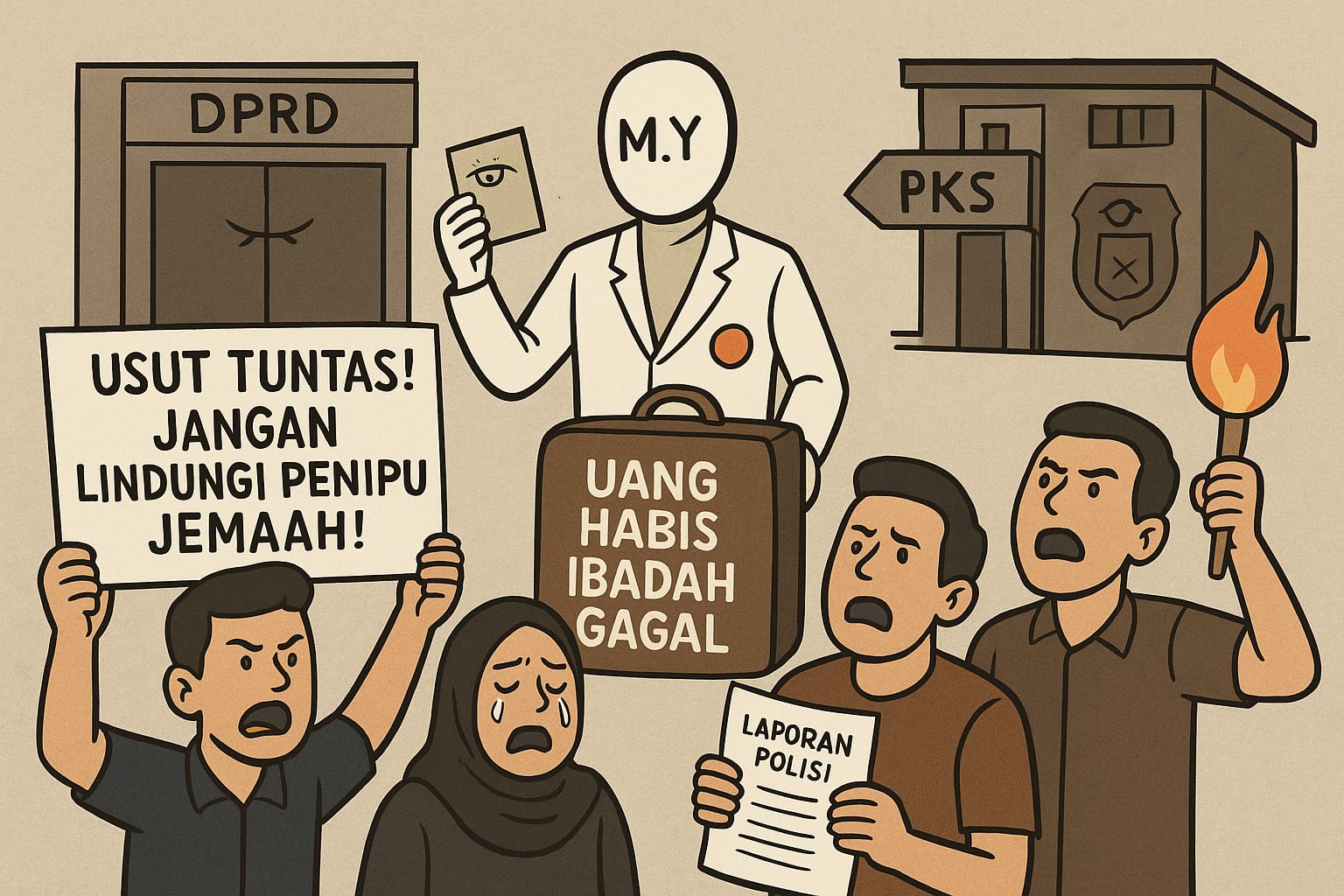 Sementara puluhan jamaah haji menangis kehilangan kesempatan ibadah seumur hidup, uang miliaran rupiah raib, Mustafa Yasin dan istrinya Nova Lahai masih bebas melenggang. Yang lebih parah, DPRD terkesan lamban, PKS bungkam, dan Polda tak kunjung menahan pelaku.